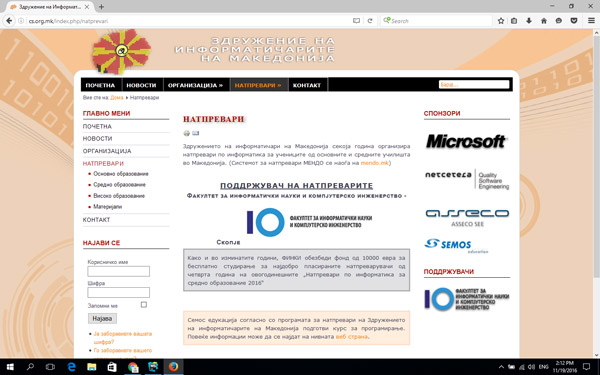 Доколку сте наставник, притиснете на копчето "Наставници" (горе-десно).